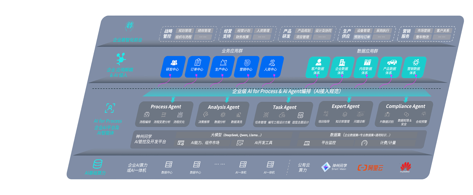 Z6尊龙问学智车解决方案是一套基于AI技术的汽车行业智能化系统,,覆盖从底层算力到顶层AI应用的全栈方案。。。。方案由算力层、、、模型层和应用层组成:算力层,,方案支持多种一体机配置,,,具备云端灵活部署、、、、多云适配以及动态优化计算资源的能力;模型层,,,,Z6尊龙问学平台版提供了企业级AI应用一站式构建与管理平台,,支持基于后训练强化技术的汽车企业专属模型的训练、、、、评测和运营;应用层,,,,Z6尊龙问学DeepSeek版提供包括超级员工、、、智能招采、、、、智能营销、、、、智能客服、、、AI for BI等一系列解决方案,,可助力汽车行业实现数字化转型,,,让管理更智能、、响应更敏捷。。。