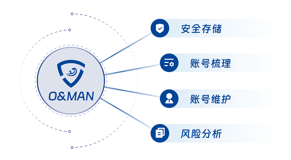 实现了从账号梳理到账号存储全生命周期的闭环管理,,包括账号梳理、、、风险分析、、账号存储等账号管理功能。。。。账号梳理模块,,,,可以自动化的按照网段批量地进行账号以及账号属性的采集;风险分析可以按照内置的风险检测规则、、、自定义的弱密码规则等进行账号风险的分析,,发现账号台账中的弱密码账号、、提权账号等账号风险问题,,,通过账号维护模块中的账号工单、、、、密码修改等进行账号的维护管理以解决账号风险;账号存储可以存放进具备国密加密芯片,,独立硬件部署的密码保险箱,,以确保账号密码存储的安全。。